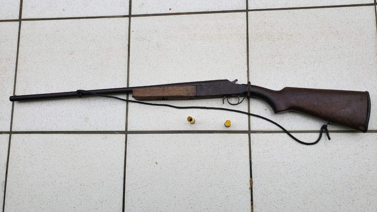 MATERIAL APREENDIDO: ESPINGARDA ARTESANAL; FACA PEIXEIRA; POVÓRA; ESPOLETA.