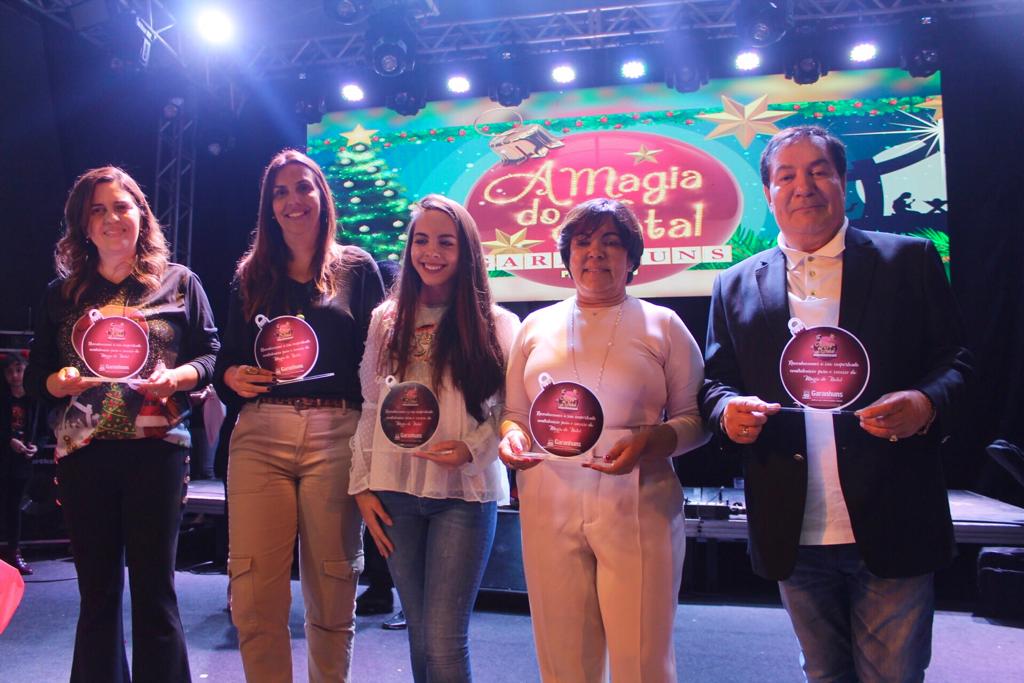 No momento, também foram entregues placas em homenagem ao idealizador do evento, o prefeito Izaías Régis, e a equipe pioneira de ‘A Magia do Natal’, sendo a primeira-dama, Socorro Régis, a administradora e filha do gestor, Michelle Régis, a ex-secretária de Turismo, Gerlane Melo, a ex-secretária de Cultura, Cirlene Leite, a secretária de Comunicação Social, Jacqueline Menezes, e a associação da Casa do Artesão.